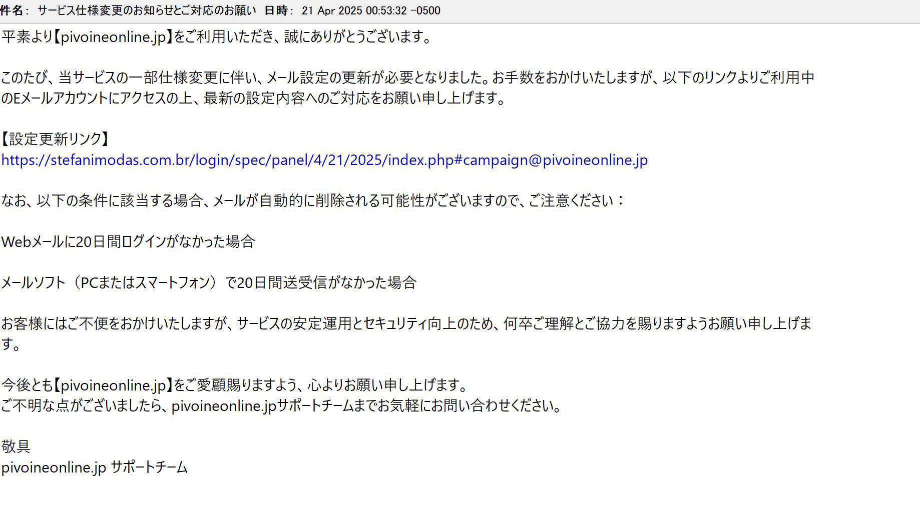 件名:【重要 注意喚起】サービス仕様の変更