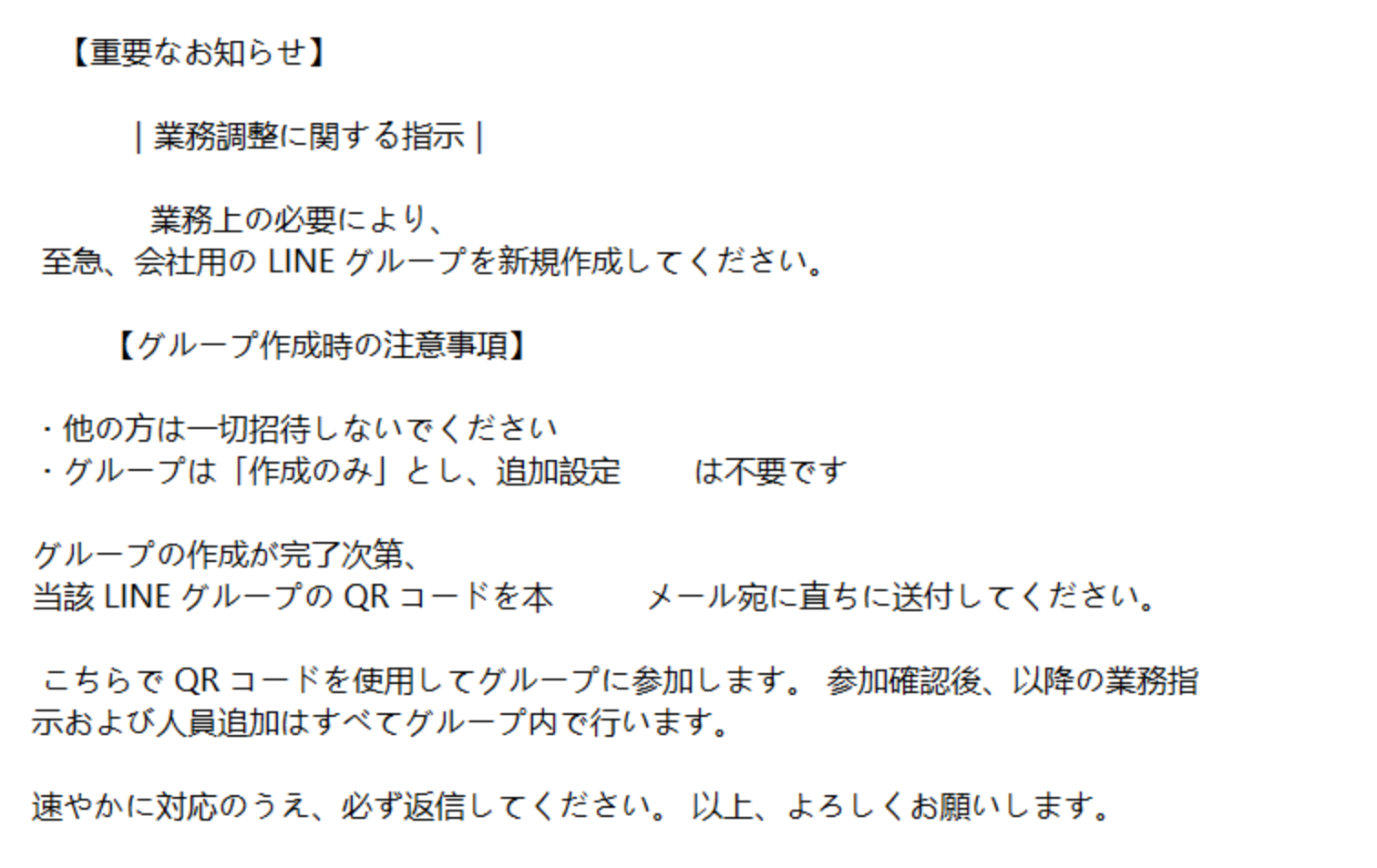 件名:【重要なお知らせ】業務調整に関する指示